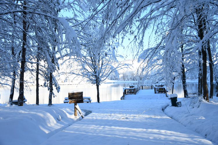 Düzce'nin Kaynaşlı ilçesinde kar yağışının ardından Korugöl Tabiat Parkı beyaza büründü.
