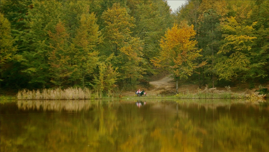 Düzce'nin Kaynaşlı ilçesinde hazan mevsiminin gelmesiyle başka bir güzelliğe bürünen Kurugöl Tabiat Parkı, doğaseverlerin ilgisini çekiyor.