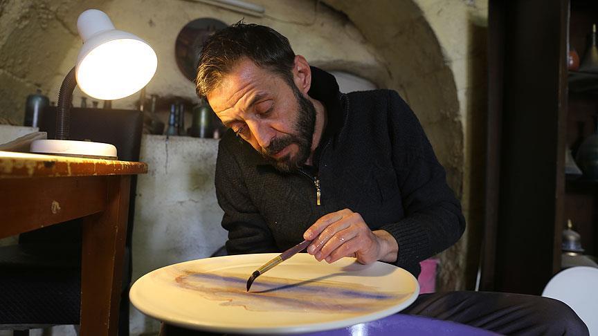 Nevşehir'in el sanatlarıyla tanınan Avanos ilçesinde asırlardır sürdürülen çanak ve seramik üretimine yeni bir tarz katan Noyan Yayla, ebru sanatı ile seramik tabaklara işlediği desenlerle özgün eserlere imza atıyor.