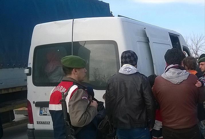 Alınan bilgiye göre, Edirne Jandarma Komutanlığı ekipleri, rutin kontrollerinde, merkeze bağlı Bosnaköy ve Kemalköy köyleri ile Uzunköprü, Meriç, İpsala ve Lalapaşa ilçelerinde, sınırı yasa dışı yollardan geçmeye çalışan Tunus, Pakistan, Suriye, Filistin ve Myanmar uyruklu 104 kişi tespit etti.