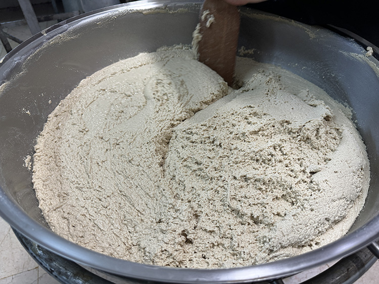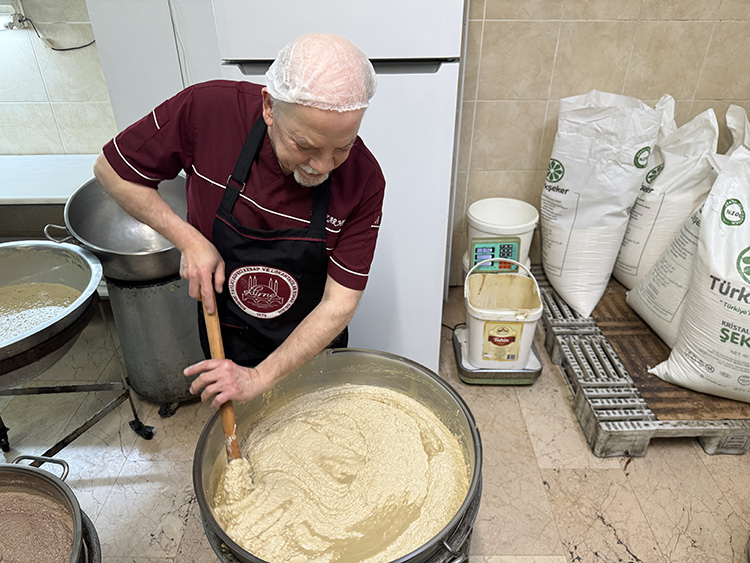 "Helvada kullanılan malzemelerin ölçüsünü belirlemek ustalık istiyor. Şeker ve tahin kıvama geldikten sonra kürek ve elle belirli aralıklarla karıştırılır. Sonra helvanın içindeki şeker kırıntıları eriyene kadar yoğurulur.
