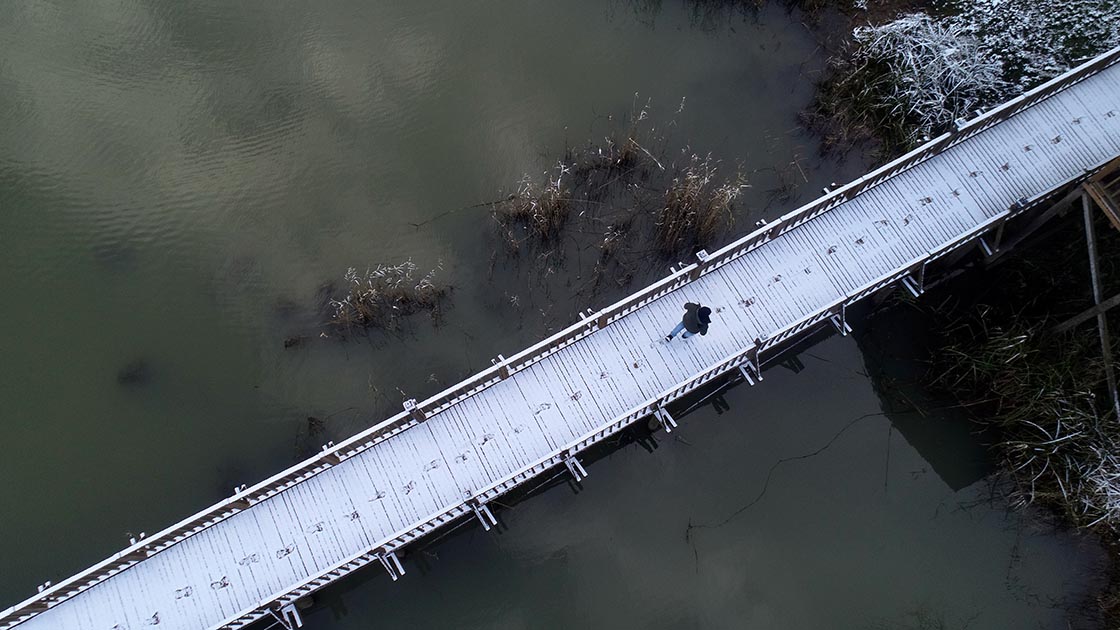 Efteni Gölü Kuş Cenneti'nde kar manzarası havadan görüntülendi
