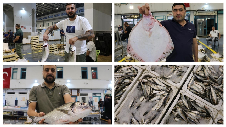 Balıkçılar, av sezonunun ilk gününde yakaladıkları balıkları satmak için İzmir'in Buca ilçesindeki İzmir Su Ürünleri Hali'ne getirdi.