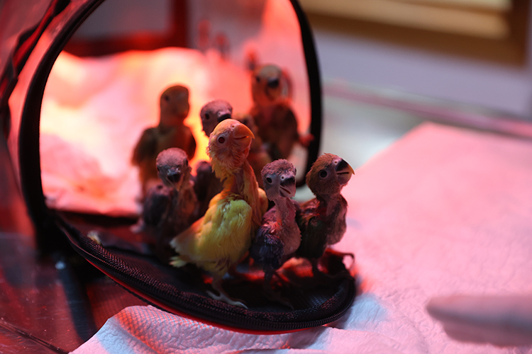 Ele geçirilen 35 günlük 8 cennet papağanı yavrusuna da veteriner hekimlerce özenle bakılıyor.