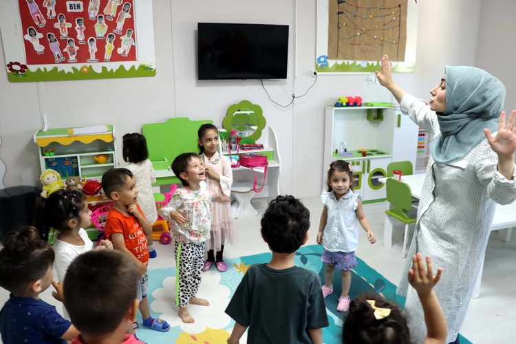Annesi Ayşe Yıldız ile okula giden 5,5 yaşındaki Yüsra, arkadaşlarıyla oyun oynadı, eğlenceli zaman geçirdi.