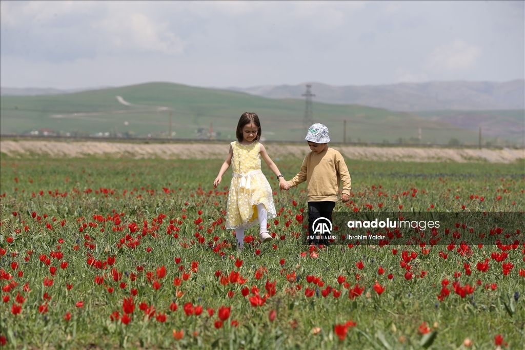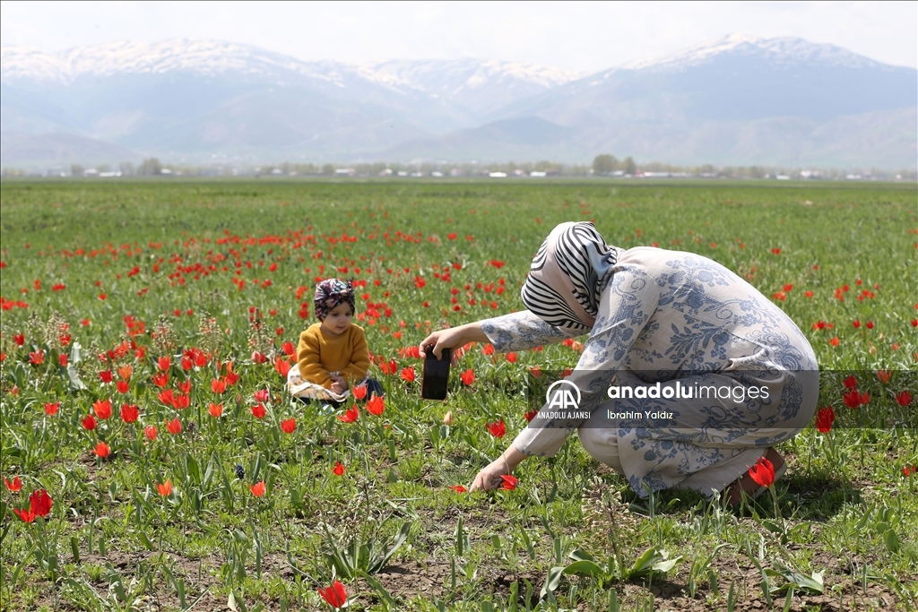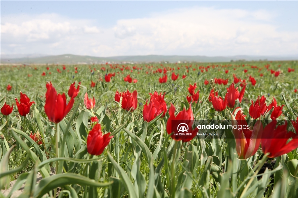Endemik tür olan Muş lalesi Muş Ovası'nı süsledi
