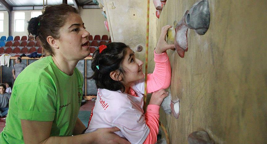 Önce badminton oynayan engelli çocuklar, daha sonra tırmanma duvarına çıktı. Üniversite öğrencilerin yardımıyla duvara tırmanan çocuklardan bazılarının korku, bazılarının ise sevinç yaşadığı görüldü.