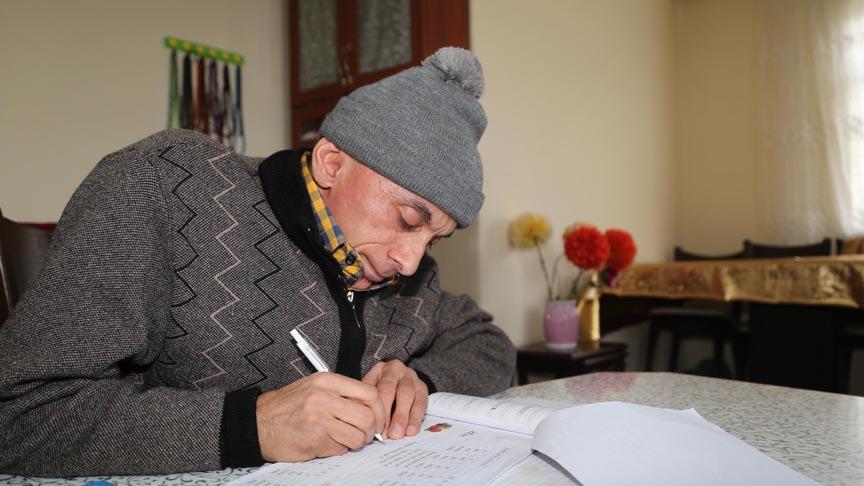 Ordu'da 3 yaşında geçirdiği çocuk felci nedeniyle engelli kalan 45 yaşındaki Dursun Ay, engelleri aşarak okuma yazma öğrenmeyi başardı.