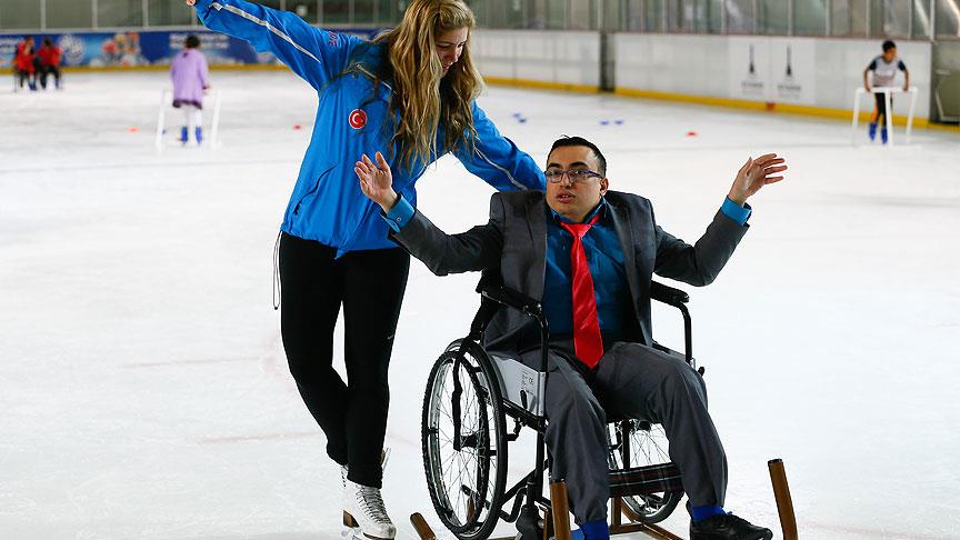 İzmir Büyükşehir Belediyesi buz pateni eğitmenlerinin özel olarak ilgilendiği engelli öğrenciler, buzun üstünde durmayı, süzülmeyi hatta dans etmeyi öğreniyor.