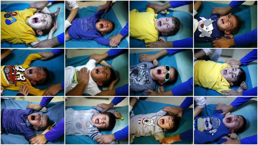 Gözlerinden yaşlar süzülürken sünnet masasına yatırılan çocukların endişe ve korkuları, o anda çekilen fotoğraflara yansıyor.