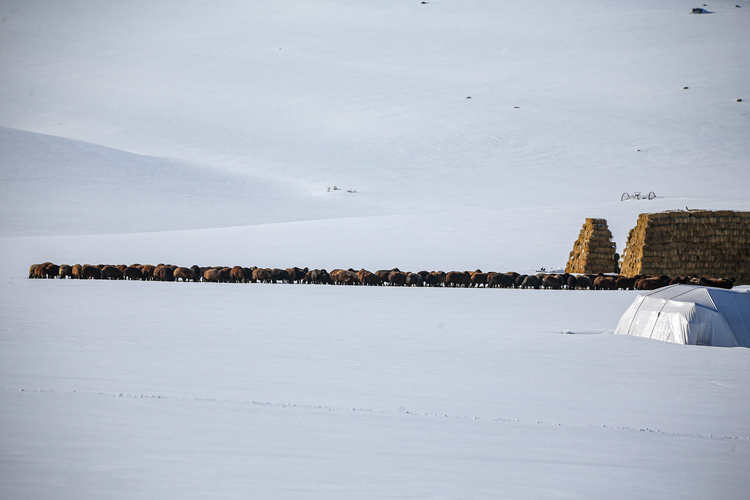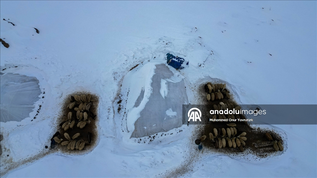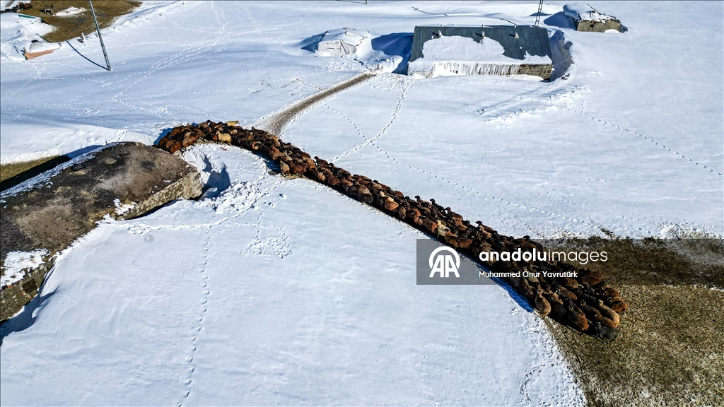 Bu yıl yağan karın yer yer 3 metreyi bulduğunu anlatan Küçük, "Köy karın altında kaldı. Hayvanlarımızı kar üzerinde besliyoruz. Otunu ve suyunu karın üstünde veriyoruz. Şu an hayvanların doğumları başladı." dedi.