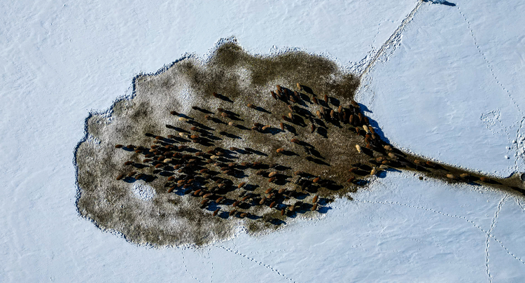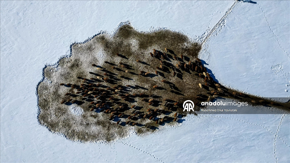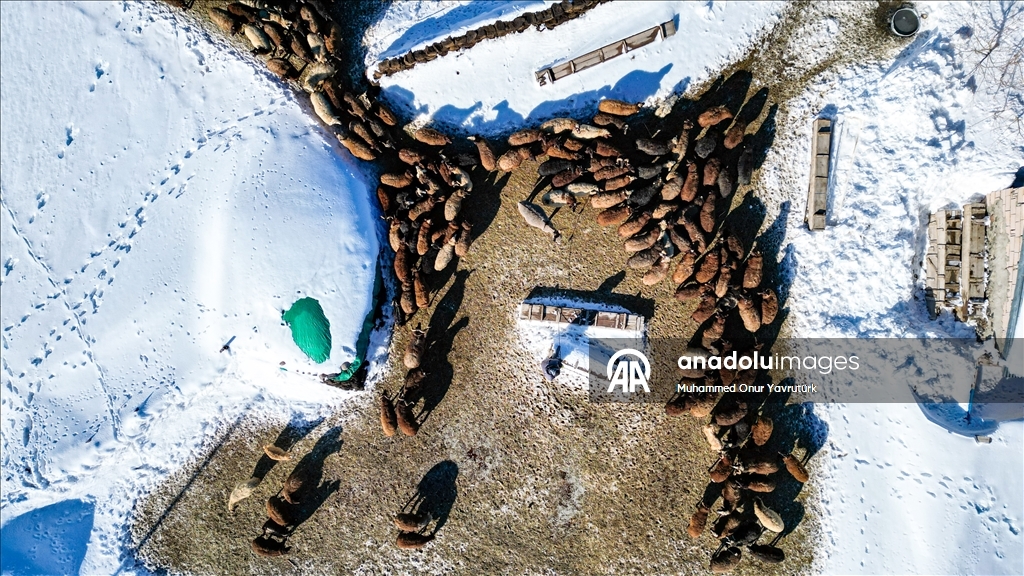 Erzurum'un kırsalındaki besiciler, yer yer 3 metreyi bulan kar ve dondurucu soğuğa karşı mücadele ederek hayvanlarını beslemeye devam ediyor.