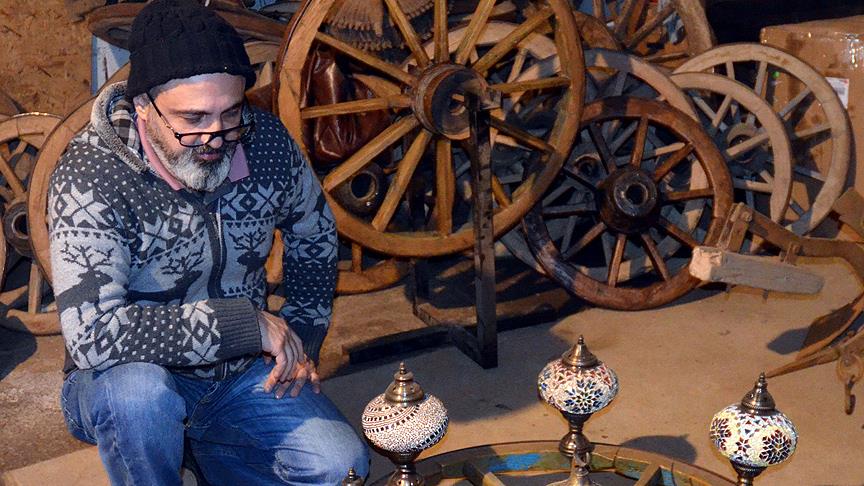 Çanakkale'nin Gelibolu ilçesindeki iş yerinde tarihe mal olmuş, kullanılmayan, kıymeti bilinmeyen ve hurdacılara düşük fiyata satılan eski eşyaları yeniden düzenleyen 50 yaşındaki Ayhan Güvenç, bunları dekorasyon malzemelerine dönüştürüyor.