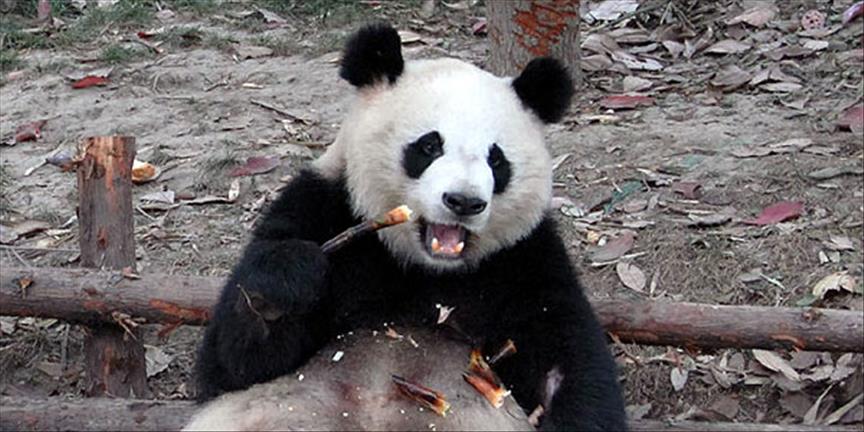 Çin'de, pandaların hayatını araştıran zoologlar, Sıçuan eyaleti Wanglong Doğal Yaşam alanında ölmüş hayvanın etini yiyen bir pandaya rastladı.