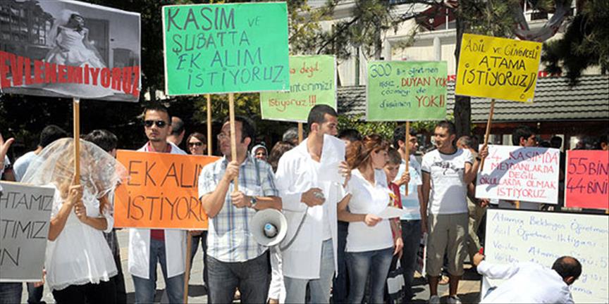 Ataması Yapılamayan Öğretmenler Birliği'nin Cumhuriyet Meydanı'nda düzenlediği basın açıklamasında bir grup öğretmen adayı, pankartlar açıp sloganlar atarak atanacak öğretmen sayısının artırılmasını istedi.