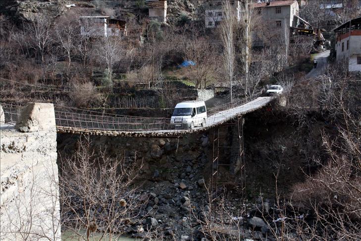 Temeli hafta içi atılan Yusufeli Barajı'nın bölgeyi sular altında bırakacak olması nedeniyle yeni bir köprü beklentisi olmayan köylüler, yaya geçişinin yanı sıra tehlikeyi göze alarak, 80 metre uzunluğunda, 2,5 metre eninde ve nehirden 15 metre yükseklikte olan köprüden araçlarıyla da geçiyor.