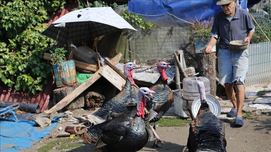 Almanya'dan emekli olduktan sonra memleketi Ordu'nun Perşembe ilçesine yerleşen 90 yaşındaki Fahrettin Özdemir, evinin bahçesinde 50 hayvanın bakımını yapıyor.