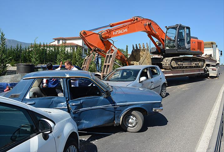 Karabük'te iş makinesi yüklü tır, freni patlayınca arkasındaki 5 araca çarparak durabildi.