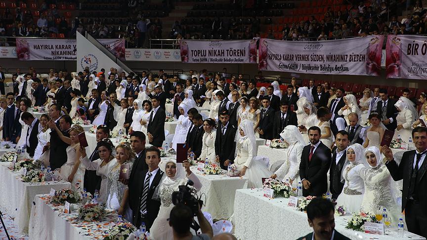 Gaziantep Büyükşehir Belediyesi tarafından düzenlenen toplu nikah töreninde 300 çift dünya evine girdi.