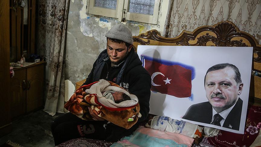 Gazze'de yaşayan Filistinli Muhammed Ramazan Dada, Cumhurbaşkanı Recep Tayyip Erdoğan'a sevgisinden dolayı yeni doğan bebeğinin ismini "Recep Tayyip Erdoğan" koydu.