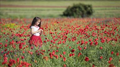 Güneydoğu Anadolu Bölgesi'nde nisan ayında yetişen ve yaklaşık bir ay tarlaları ve yol kenarlarını süsleyen gelincikler, Şanlıurfa'nın Viranşehir ilçesinde de doğaseverlere farklı bir atmosfer yaşatıyor.