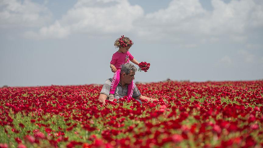 Türkiye'de ilkbahar mevsiminde çoğu bölgede doğal olarak yetişen, şiir, efsane ve türkülere konu olan gelincik çiçeği, kırmızı görüntüsüyle Şanlıurfa'daki uçsuz bucaksız tarlalarda görsel şölen oluşturuyor.
