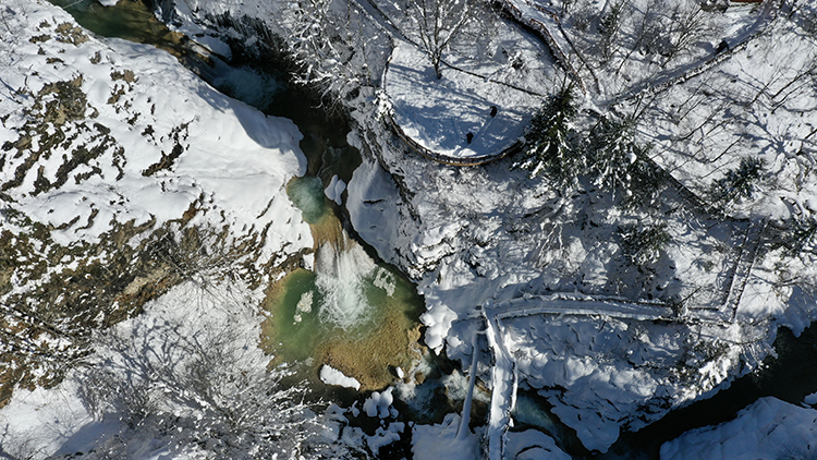 Giresun'daki Mavigöl ile Kuzalan Şelalesi beyaz örtüyle kaplandı