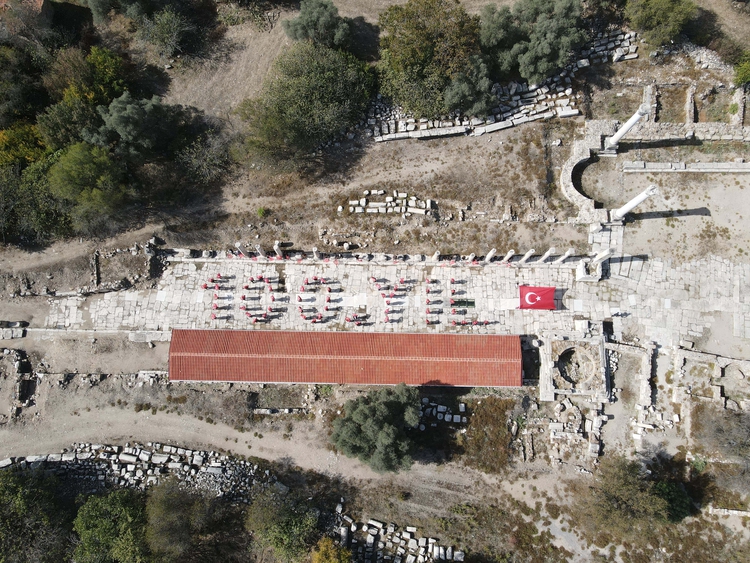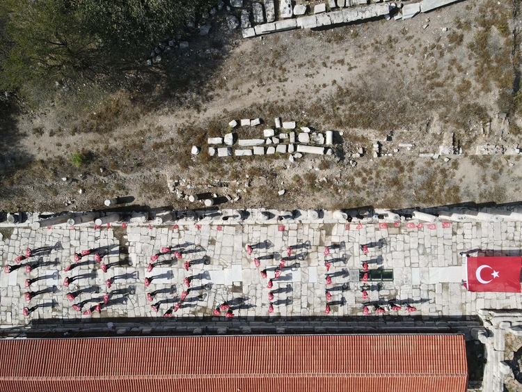 Kazı Başkanlığı koordinesinde kentteki kazı ve restorasyon çalışmalarında görev alan 100 kadın kentte kazılarda ortaya çıkardıkları ve restorasyon çalışmasını gerçekleştirdikleri Kuzey ve Batı Cadde'de toplanarak "100. Yıl" ve "Türkiye" koreografisini oluşturdu. Bazı çalışanlar da Türk bayrağı açtı. Eskihisar Mahallesi sakinleri de bu gösteriye destek verdi.