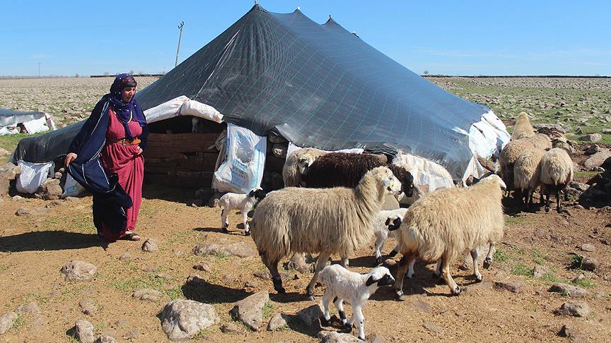 Kış mevsimi nispeten daha ılık olan Şanlıurfa'da kurdukları çadırlarda geçiren göçerlerin kadınları, 8 Mart Dünya Kadınlar Günü'nden habersiz günün ilk ışıklarıyla zorlu mesailerine başlıyor.