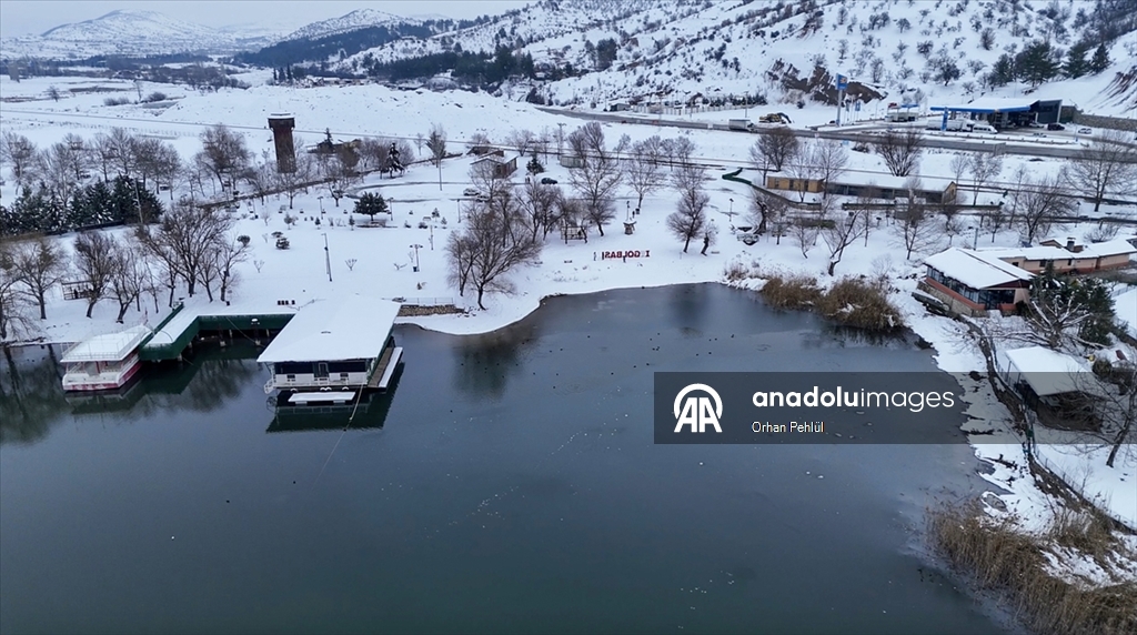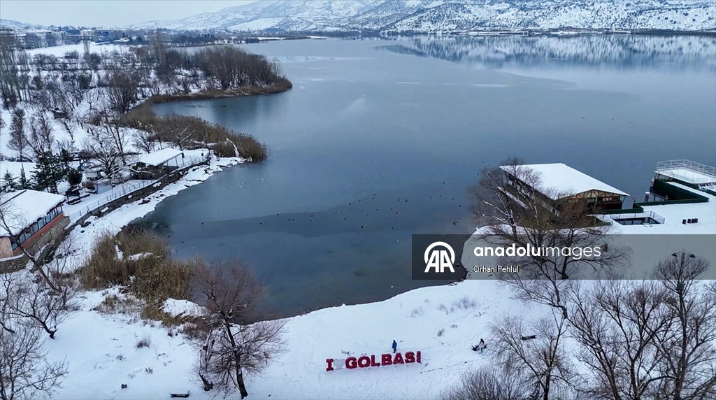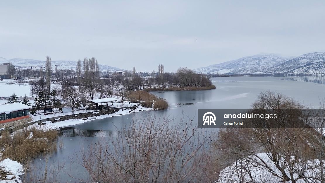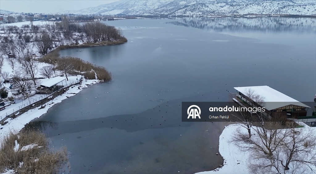 Adıyaman'ın Gölbaşı ilçesindeki "Gölbaşı Gölü", soğuk hava nedeniyle dondu.