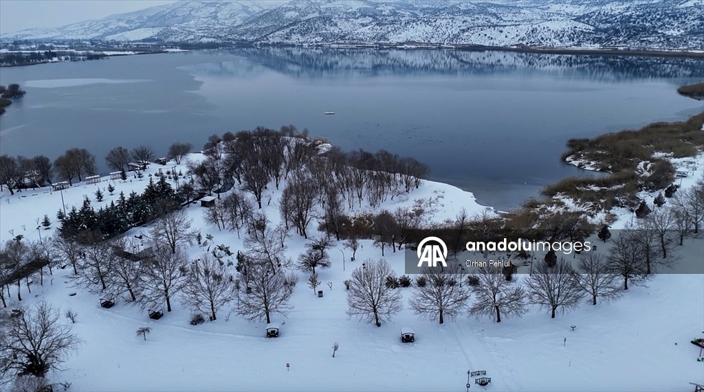 Göl yüzeyinin donması ve kar yağması, fotoğraf tutkunları ve doğaseverler için güzel manzaralar oluşturdu.