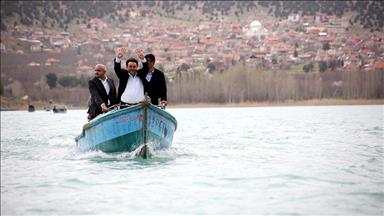 Beyşehir Gölü'ndeki Mada Adası'nda yaşayanlar, göl yüzeyinin donmasının sonucu ulaşımı yürüyerek sağlıyor.