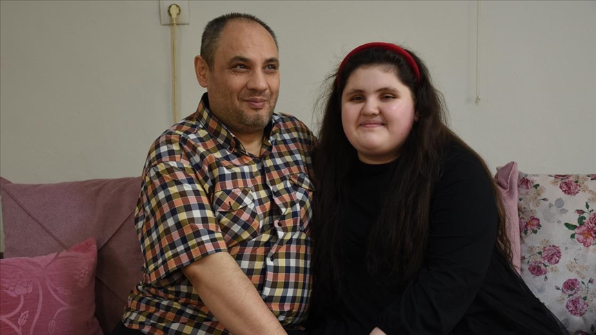 Kızım çok idealist ve derslerine de çok iyi çalışıyor. Derslere uzaktan eğitimle katılıyor. Kabartma yazı okuyarak ezber yapıyor, annesi ve ablası de verilen dersleri kitaplarından okuyor. Dersleri iyi, çalışkan ve azimli olduğu için biz de elimizden gelen desteği vermeye çalışıyoruz."