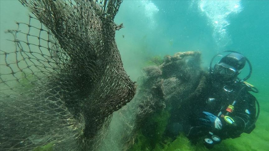 Cem Karabay, dalışın ardından AA muhabirine yaptığı açıklamada, yaptıkları çalışmada aslında bir yerde deniz temizliğinden bir tık daha ileri giderek suyun altındaki hayalet ağları çıkardıklarını söyledi.