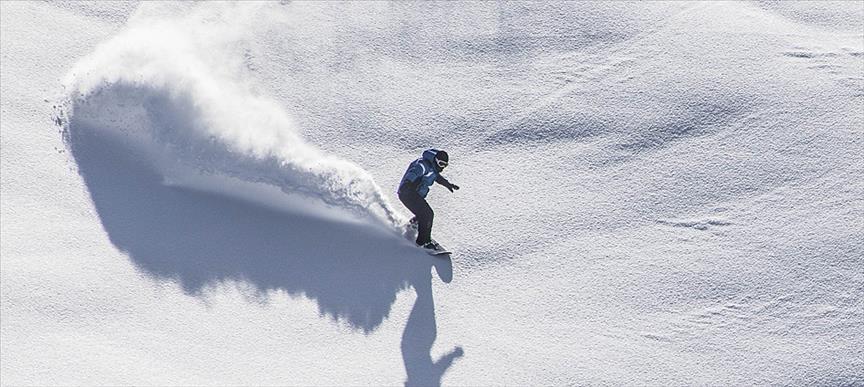 Kent merkezine 12 kilometre uzaklıkta bulunan 2800 rakımlı Merga Bütan Yaylası'ndaki kayak merkezine giden gençler, burada snowboard yapmanın keyfini çıkarıyor.