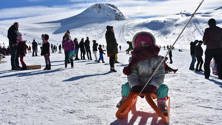 Kar kalınlığının yer yer 2 metreyi bulduğu Hakkari'de, 2 bin 800 rakımdaki kayak merkezi, yarıyıl ve hafta sonu tatilini fırsat bilen vatandaşlarla doldu.