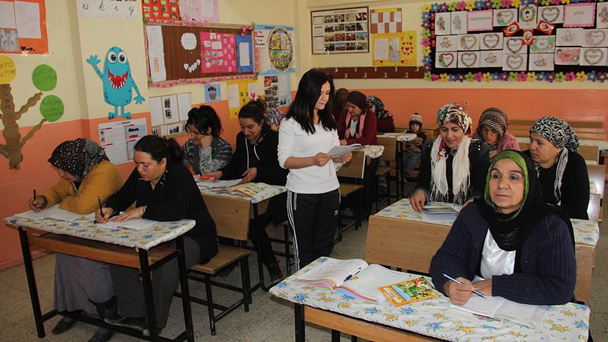 İl Milli Eğitim Müdürlüğünce bazı okullarda hafta sonu açılan okuma yazma kurslarına kadınlar ilgi gösteriyor.