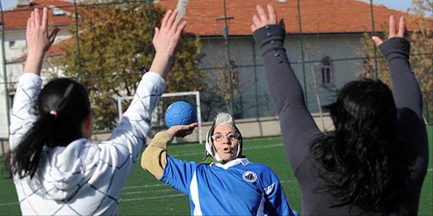 Hentbol kursuna katılan kadınlar, Altındağ Belediyesinin Yıldıztepe Lokali'ne ait tesislerde çalışma yapıyorlar.