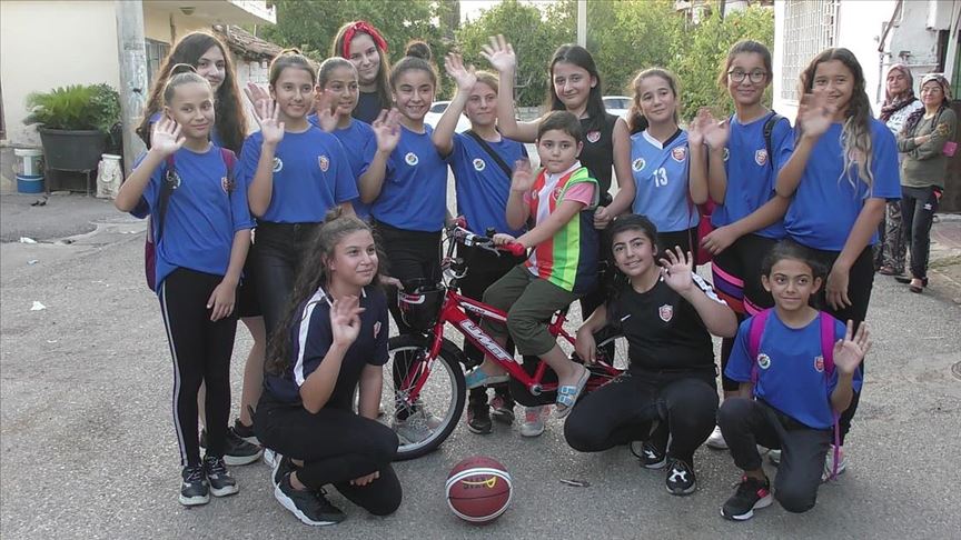 Antalya'da 14 yaş altı basketbol kız takımı, geçirdiği rahatsızlık nedeniyle tedavi gören 6 yaşındaki Efe Aslan'ı, hayalini kurduğu bisikleti harçlıklarıyla alarak sevindirdi.