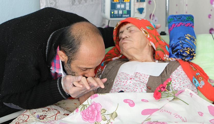 Geçirdiği beyin kanaması nedeniyle 2 yıl önce yatağa bağımlı hale gelen ve 20 yıldır süren rahatsızlığı yüzünden bakıma muhtaç olan 80 yaşındaki annesinin ihtiyaçlarını tek başına gideren 42 yaşındaki Mustafa Hamamcı, uğruna işini bıraktığı ve hiç evlenmediği annesinin bakımını büyük bir titizlikle yapıyor.