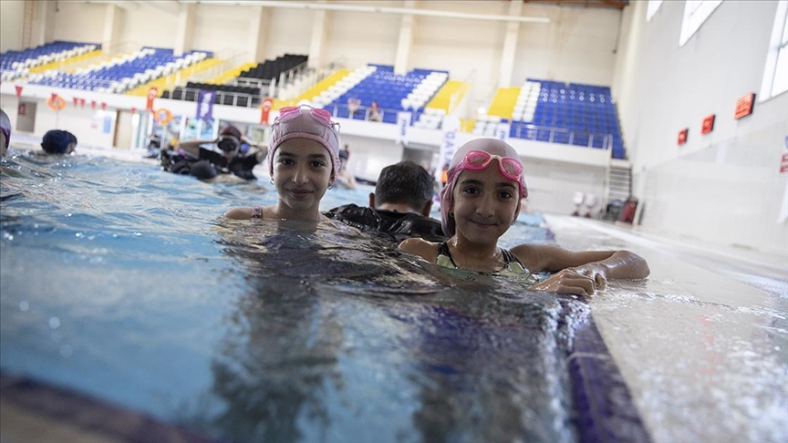 Öğrenciler daha sonra dalgıçlarla derinliği 120 santimetre ve 2 metre olan iki farklı havuza girerek yüzme stillerini öğreniyor. Yüzme eğitimlerine ilk etapta 20 öğrenci katılıyor.