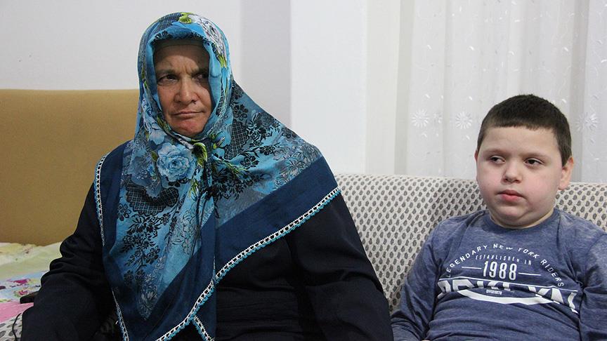 "Bu çocuk her şeye muhtaç, bakıma ihtiyacı var. Normal yemek yemiyor yoğurt, süt, meyve suyu. Bir buçuk yaşındayken zayıftı, yaşamaz dediler, parmak gibi çocuktu, 5 aylık bebek gibi geldi bana. Ben ona parmakla ağzını açarak süt verdim. Biberon da emmiyordu, zorla biberonla besledik, Allah'a şükürler olsun bu zamana kadar geldik."
