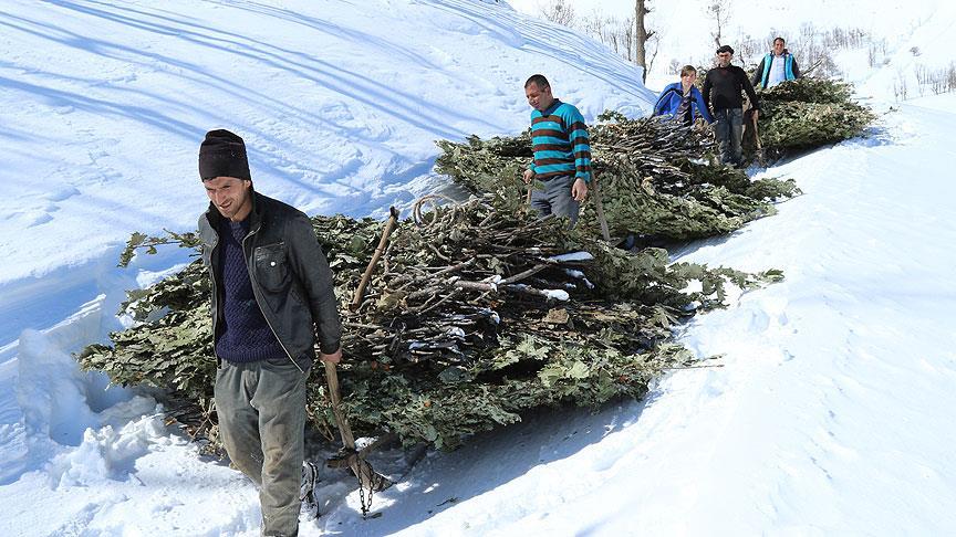 Kızakla ağaç dalı taşıyan besicilerden Samet Öngan, yaptığı açıklamada, yazın dağ yamacında biriktirdikleri ağaç dallarını ulaşım sıkıntısı nedeniyle köye götüremediklerini, ancak kışın karın yağmasının ardından ağaçları kızak yardımıyla köye taşıdıklarını söyledi.