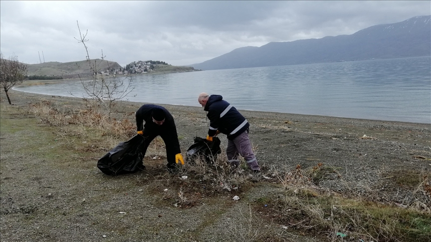 İl Özel İdaresinden yapılan açıklamaya göre, çevrenin korunması konusunda farkındalık oluşturulması amacıyla göl kıyısında başlatılan temizlik çalışması sürüyor.