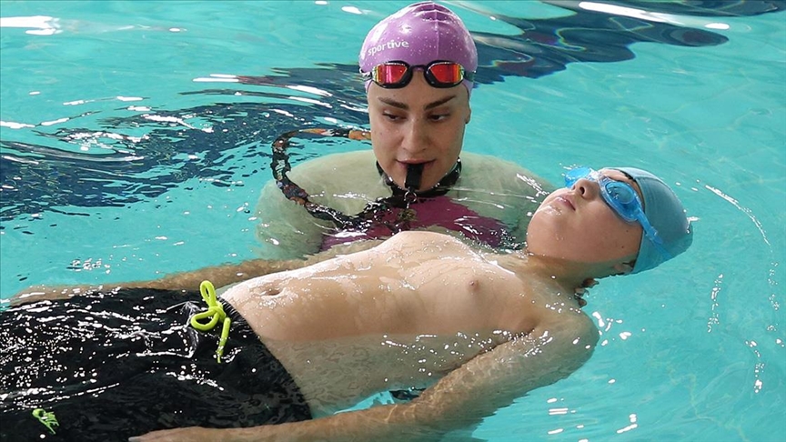 Miraç Aydın (15) ise antrenöründen aldığı eğitimle yüzmeyi öğrendiğini dile getirdi.