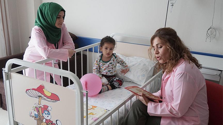 Sağlık-Sen Tekirdağ Şubesi ve Çorlu Devlet Hastanesi iş birliğinde "Can Dostu Gönüllüleri Projesi" kapsamında, hastanede tedavi gören çocuklara haftada bir saat hemşireler tarafından masal okunuyor.