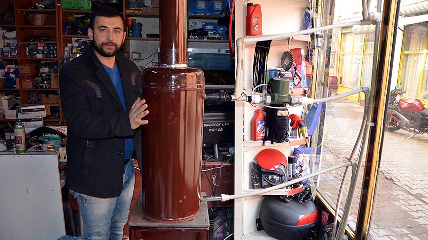 Kahramanmaraş'ın Elbistan ilçesinde bir esnaf, soğukta çalışmakta güçlük çekince, hurda malzemelerle iki ayrı iş yerini ısıtan kalorifer sistemi kurdu.