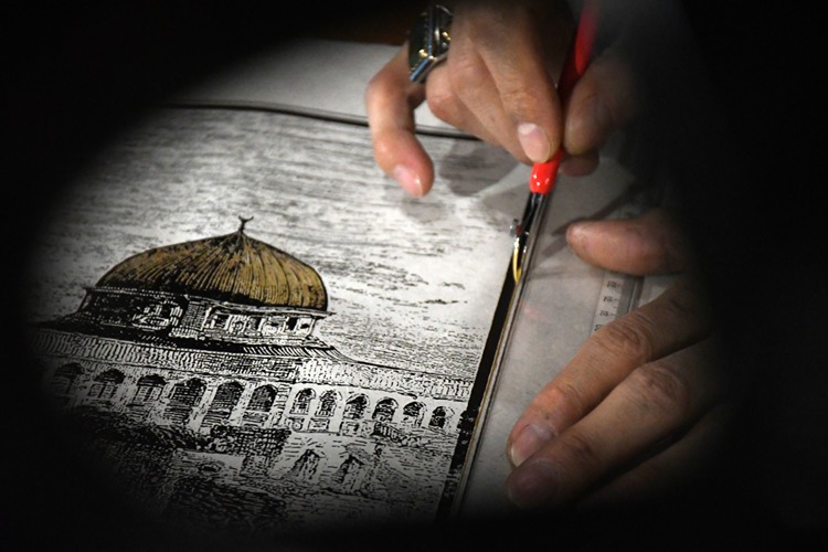 İbadete kapatılan Mescid-i Aksa'yı gündemde tutmak için el yapımı kağıtlara işliyor
