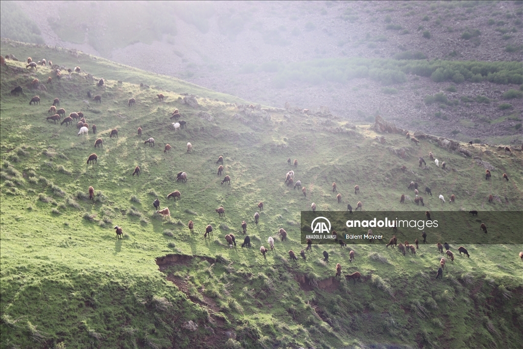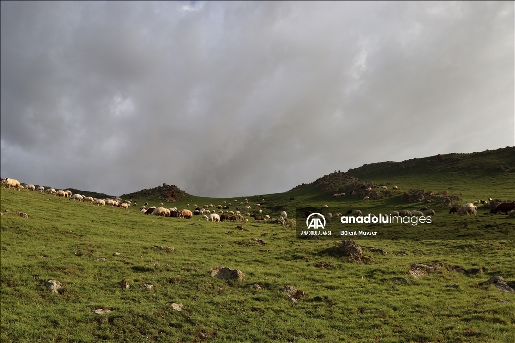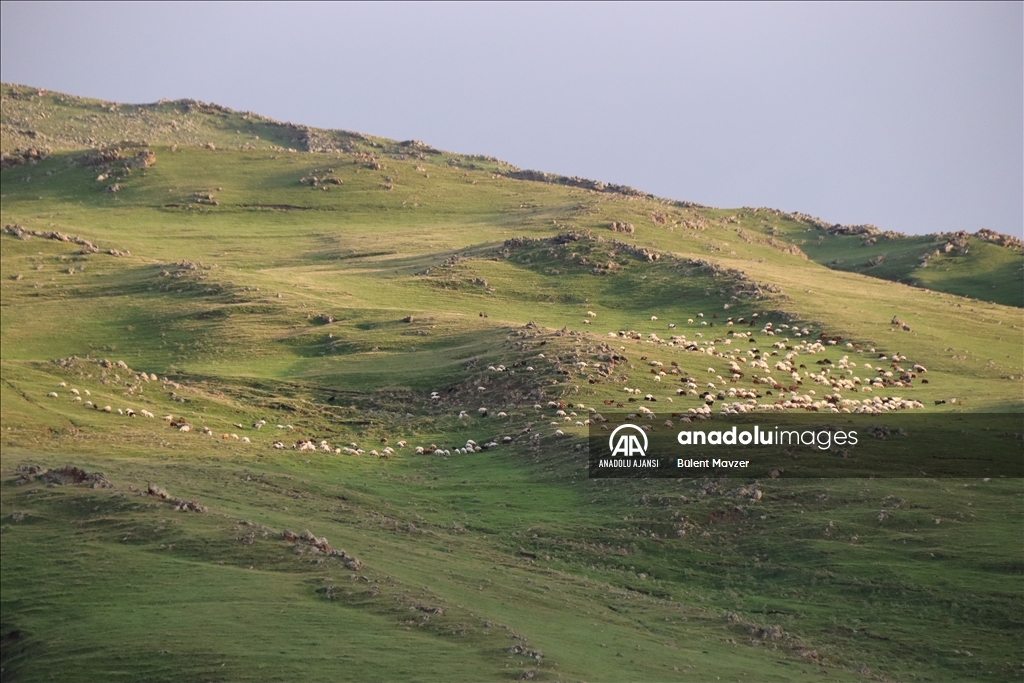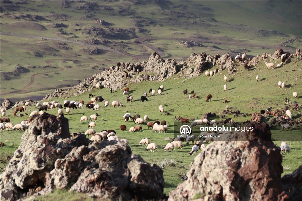 Türkiye'nin önemli küçükbaş hayvancılık merkezlerinden Iğdır'da besiciler, bu yıl etkili olan yağışlarla dağ ve meralar yeşile bürününce kendi otlaklarında kalmayı tercih etti.