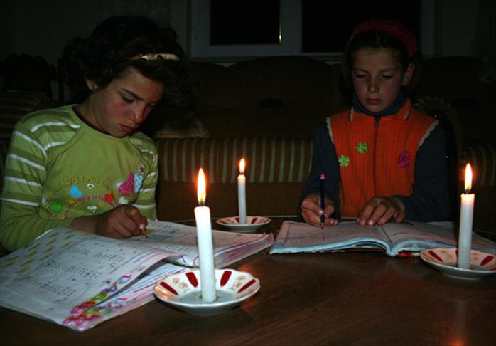 İlköğretim 5. sınıf öğrencisi 11 yaşındaki Aynur Akdeniz, 9 yaşındaki kardeşi Songül Akdeniz ile karanlıkta ders yapamadıkları için öğretmenlerinden azar işittiklerini söyledi.